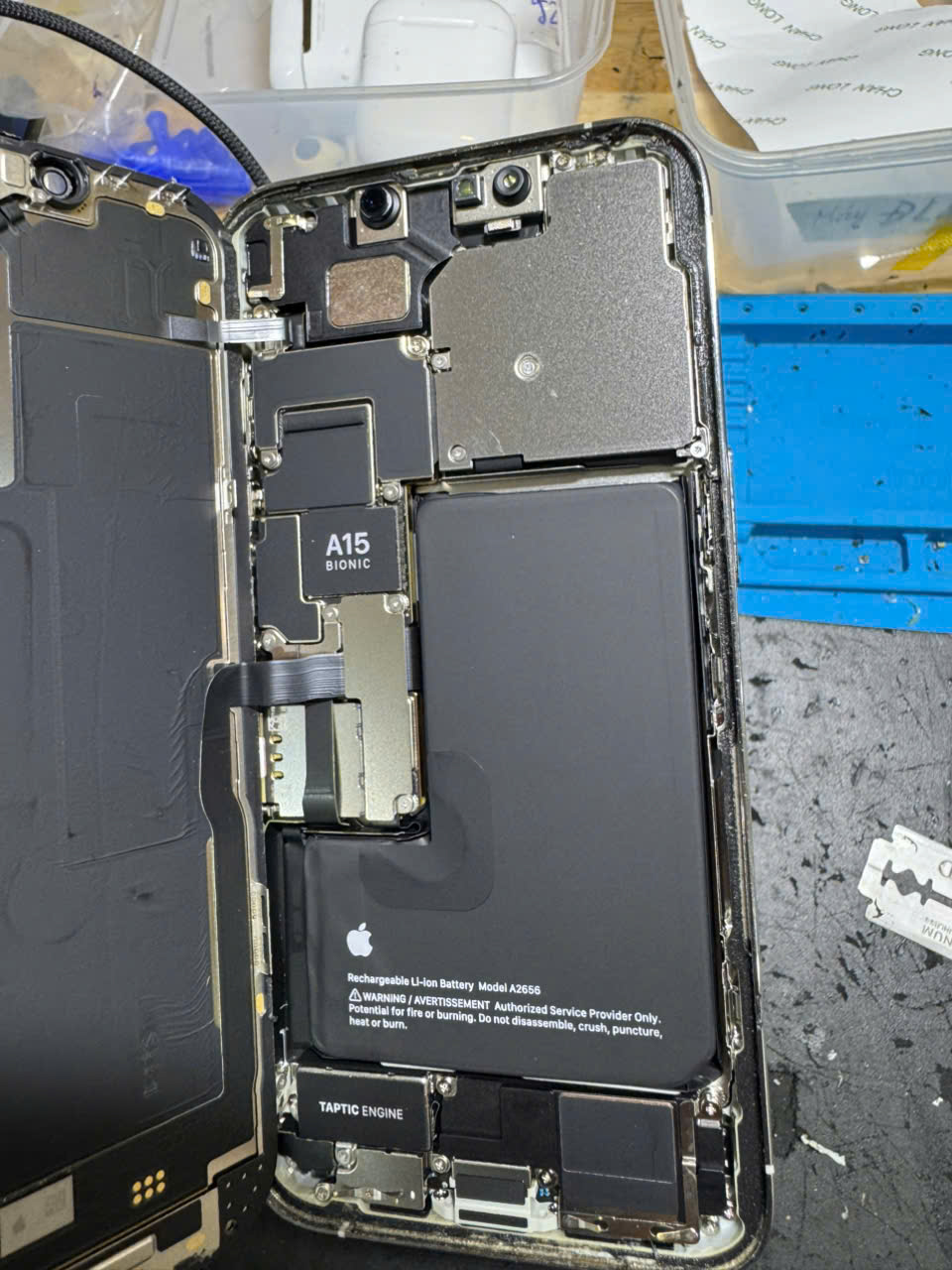 Thao tác cẩn thận: Chúng tôi sẽ tiến hành tách màn hình ra khỏi thân máy một cách cẩn thận. Để tránh làm hỏng các linh kiện khác. Đặc biệt là Face ID và các cảm biến.
